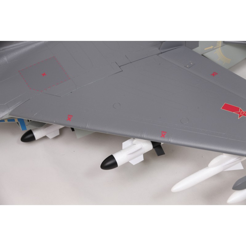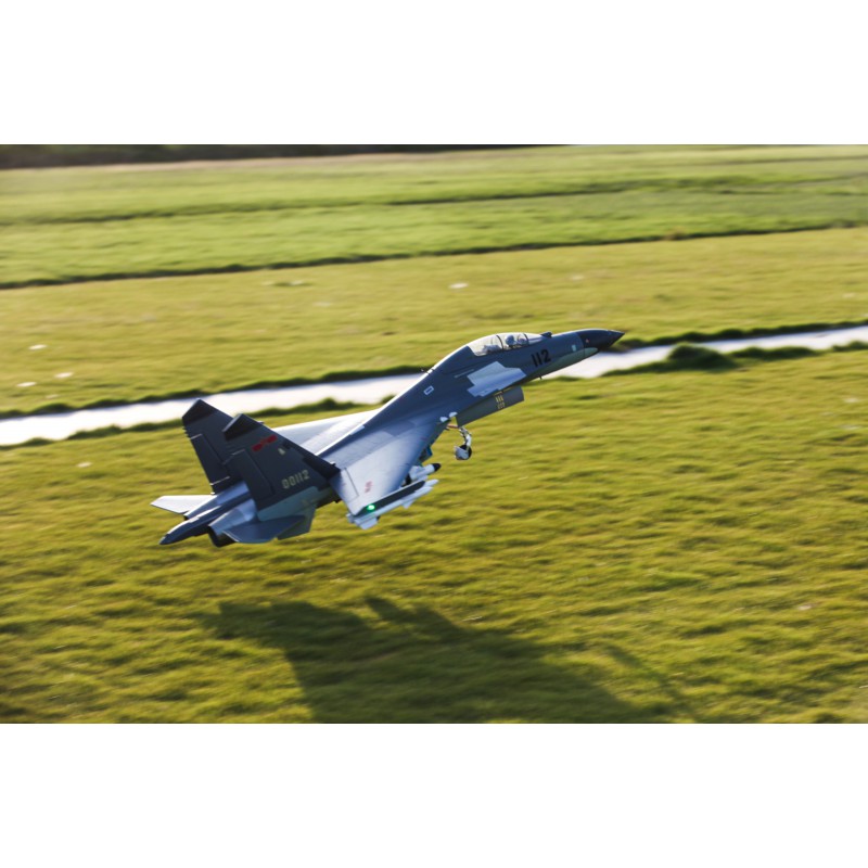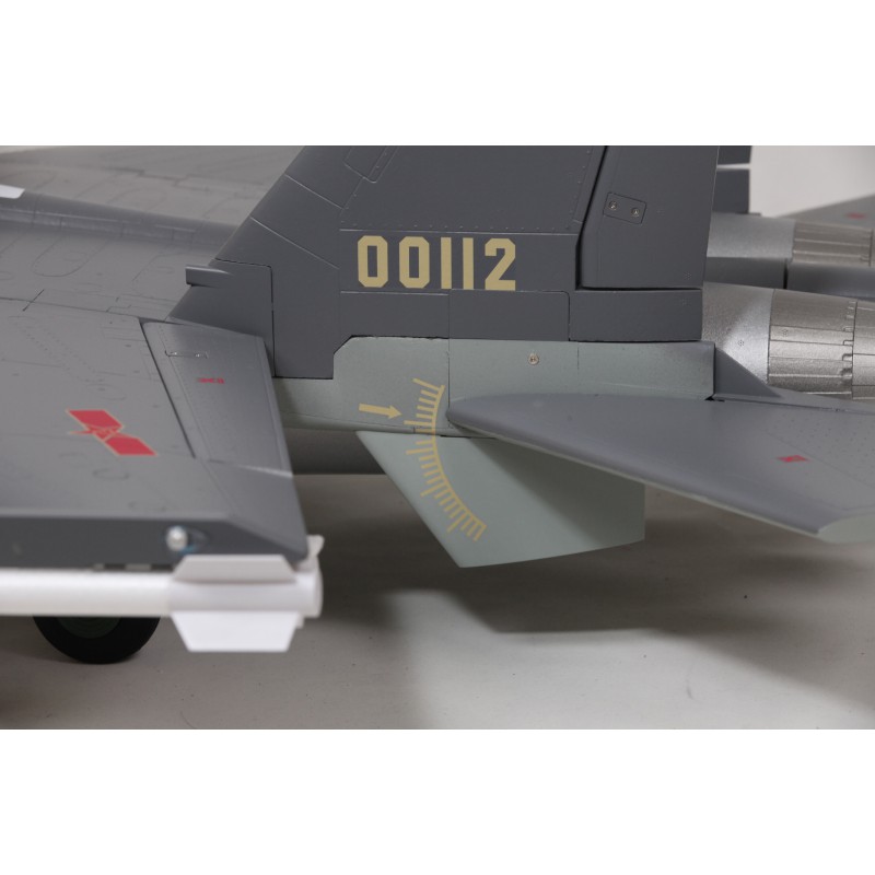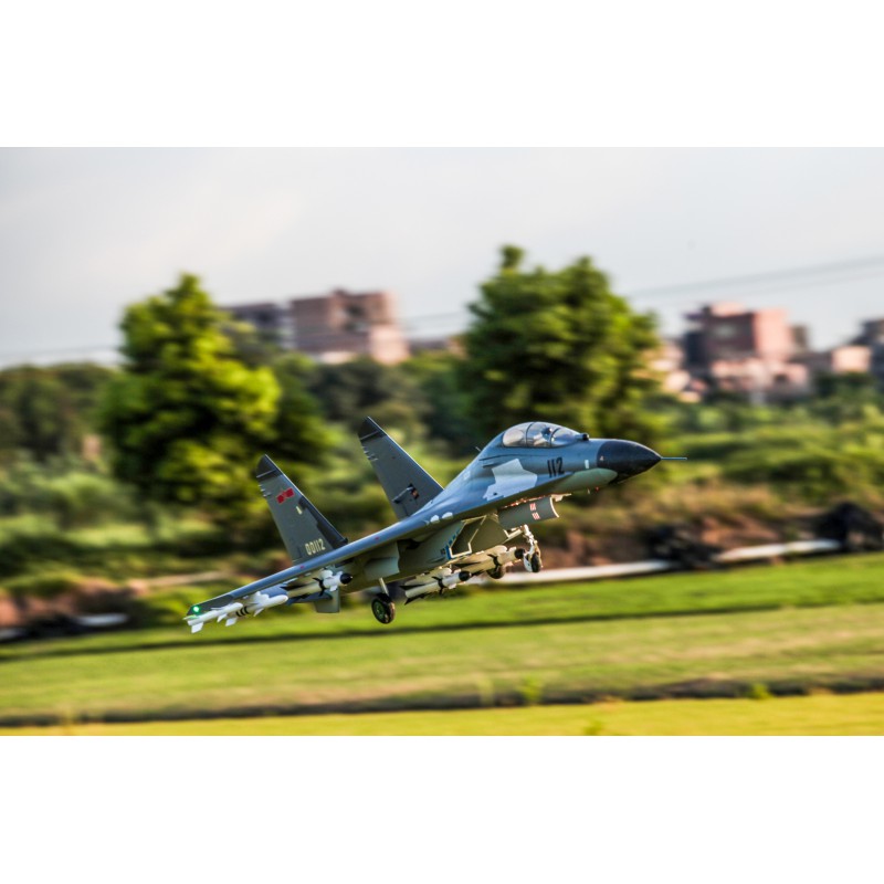 In terms of appearance, FMS captures the essence of this fighter. Functional restoration, such as large size airbrake, LED navigation lights & landing lights, full-motion tail, landing gear door with sequencing effect, retractable landing gear system that can resist hard landings, static restoration such as cockpit details, panel lines, detachable ordnance, pilot, and highly recognizable trim scheme, all these details combine to make the FMS J-11 stand out on the tarmac and in flight.