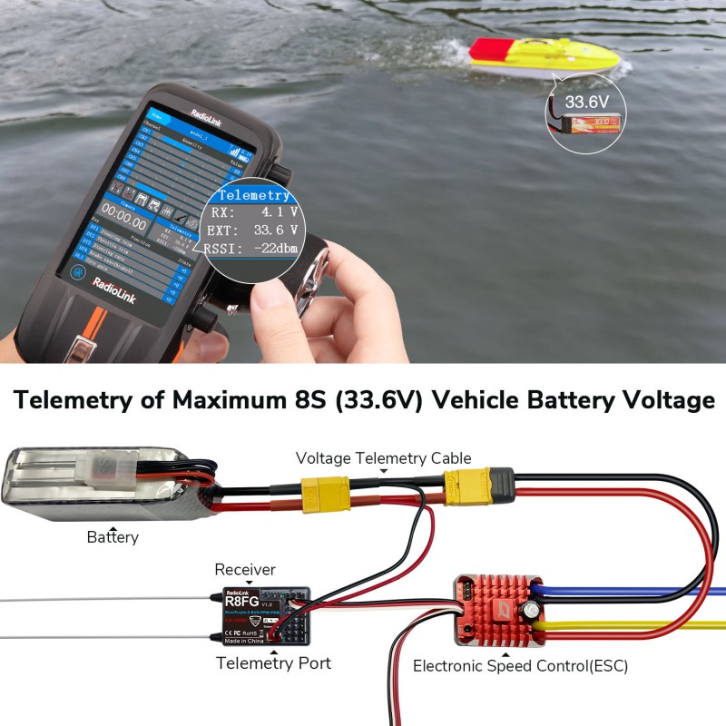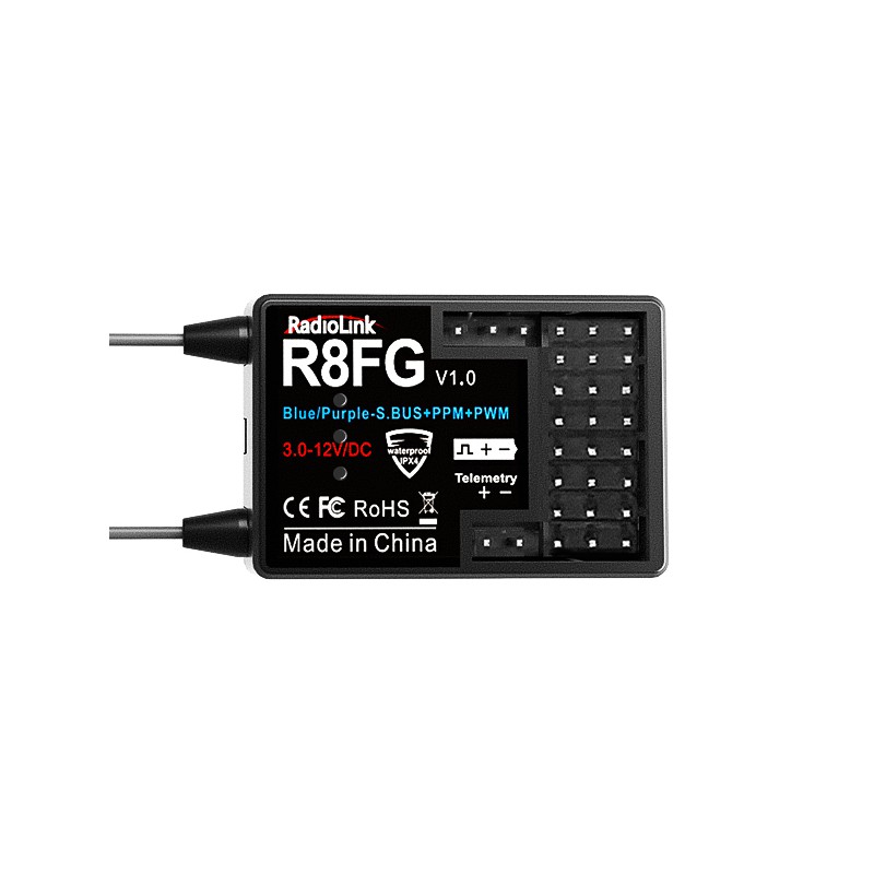 8 pcs of AAA batteries or a 2S-4S LiPo or a 6S Ni-MH battery universal jst connector with the voltage protection software of Radiolink ensure vital components are protected from reverse polarity connection