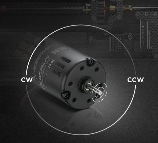The motor rotation is adjustable CW (clockwise) and CCW (counterclockwise), adapting to different chassis.