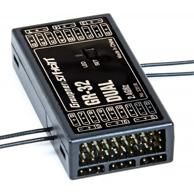 The reliable and simple Graupner GR-32 offers redundancy without the complexity of installing multiple receiver satellites or additional hardware.
