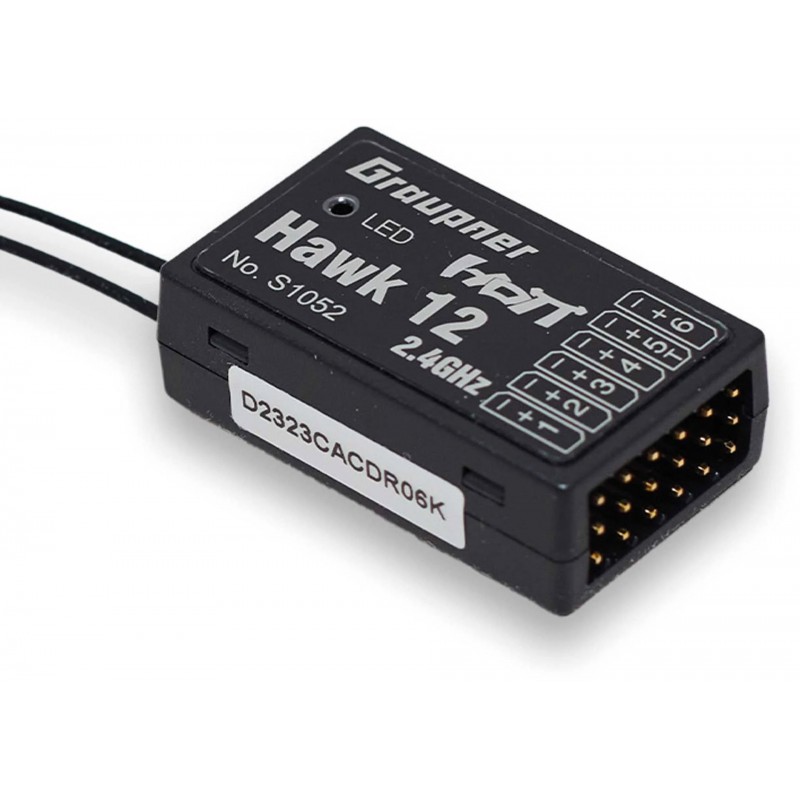 With the Hawk 12, Graupner presents a powerful 6-channel receiver with integrated 3-axis gyro and particularly vibration-insensitive 3-axis acceleration sensor, diversity antennas, vario and attitude mode for fixed-wing models or rescue mode and attitude mode for helicopters.