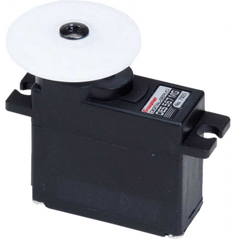 This servo features metal gears, and the potentiometer operating voltage is passed to the servo’s metal output shaft. If an aluminium control surface horn or a non-insulated RDS linkage is used with the servo, and if an electrically conductive contact with the airframe also exists - e.g. in an all-carbon model - the servos will interact with each, as the aforesaid voltage is transmitted between them. You can avoid this problem either by using a plastic control surface horn, or by insulating the servo mount in such a way that no electrical connection exists.