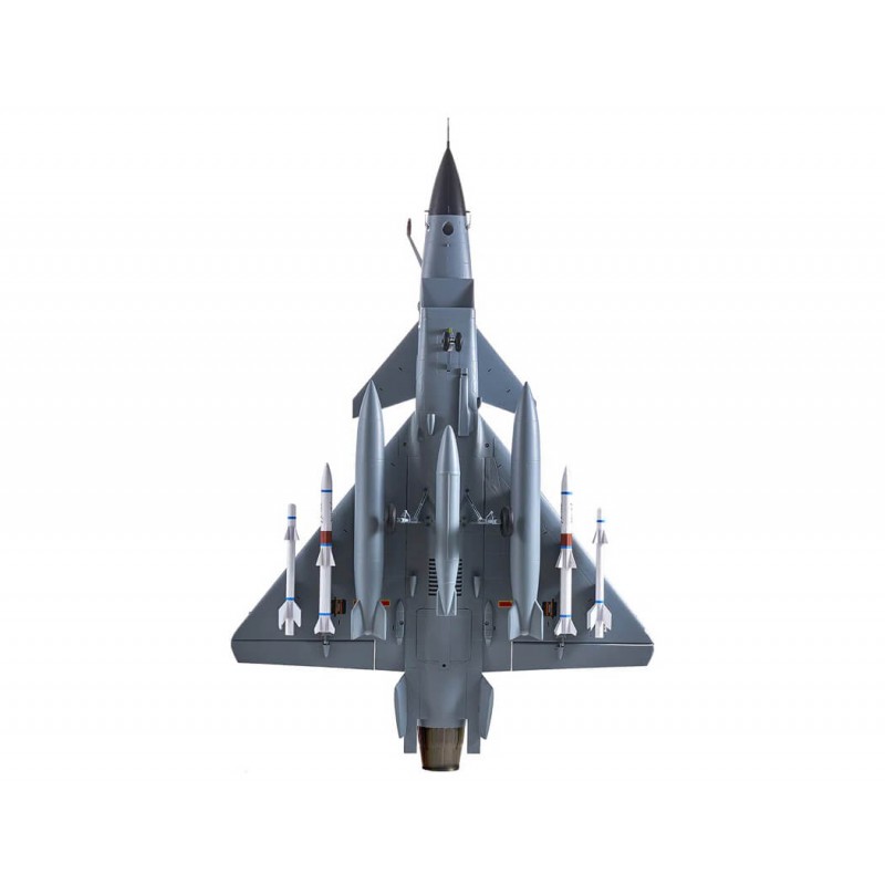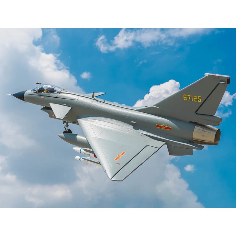 The J-10 EDF Jet features a unique delta wing and canard design for exceptional high-speed handling and also agile low-speed maneuverability. Using common 4S batteries, it is powered by a 64mm ducted fan with a brushless motor and a 40A ESC which helps to replicate the sound of a fighter jet. High-fidelity details include detachable weapon sets, an air refueling probe, navigation lights, and CNC-machined landing gear. Made from EPO 40 foam, it offers impact resistance and a water-resistant paint finish. The J-10 EDF jet is easy to assemble. Experienced modelers can complete assembly in about thirty minutes. Optional paint schemes are also available.