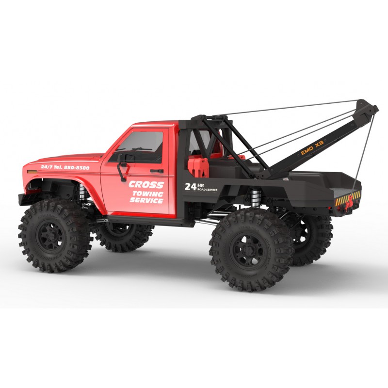 Cross RC EMO X3 is based on an off-road rescue vehicle, equipped with the powerful Cross RC EMO X chassis, and adds a number of major optimization upgrades. This resulted in the creation of this 1:8 multifunctional 4×4 simulation climbing vehicle EMO X3 that integrates trailer rescue and high-performance climbing.