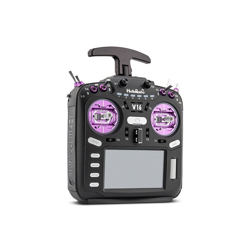 The HelloRadio V16 MAX remote control combines cutting-edge technology with sophisticated design, giving you complete control. Equipped with the open-source EdgeTX system, an LED display, and an innovative AI voice assistant, it opens up entirely new possibilities. Intelligent safety features, flexible module compatibility, and precise motion control ensure you maintain complete control at all times. Another highlight is that the LEDs around the gimbals can be programmed in a variety of colors.