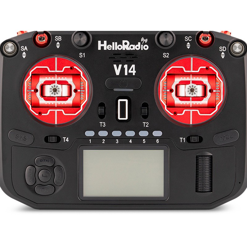 HelloRadio V14 MAX OLED 2,4 GHz Transmitter - ELRS LBT - Mode 2 - Black/Red