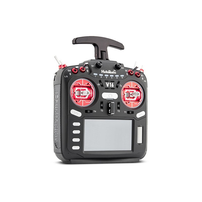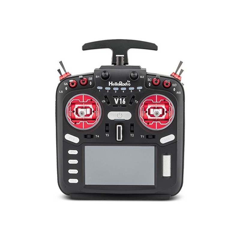 The HelloRadio V16 MAX remote control combines cutting-edge technology with sophisticated design, giving you complete control. Equipped with the open-source EdgeTX system, an LED display, and an innovative AI voice assistant, it opens up entirely new possibilities. Intelligent safety features, flexible module compatibility, and precise motion control ensure you maintain complete control at all times. Another highlight is that the LEDs around the gimbals can be programmed in a variety of colors.