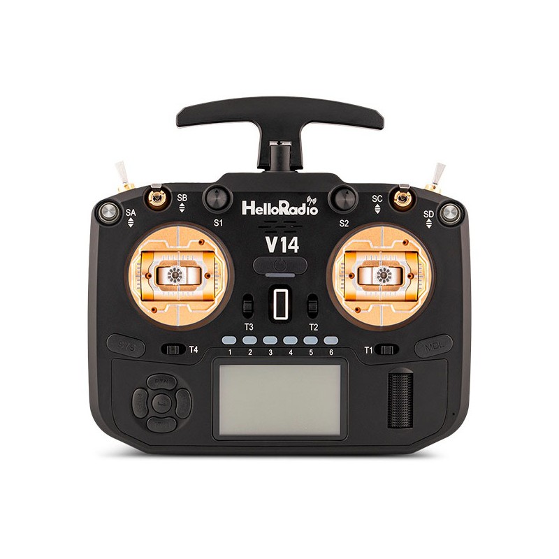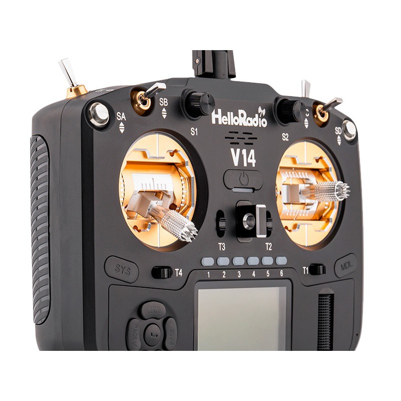 HelloRadio V14 MAX R9 OLED 2,4 GHz Transmitter - ELRS LBT - Mode 2 - Black/Gold