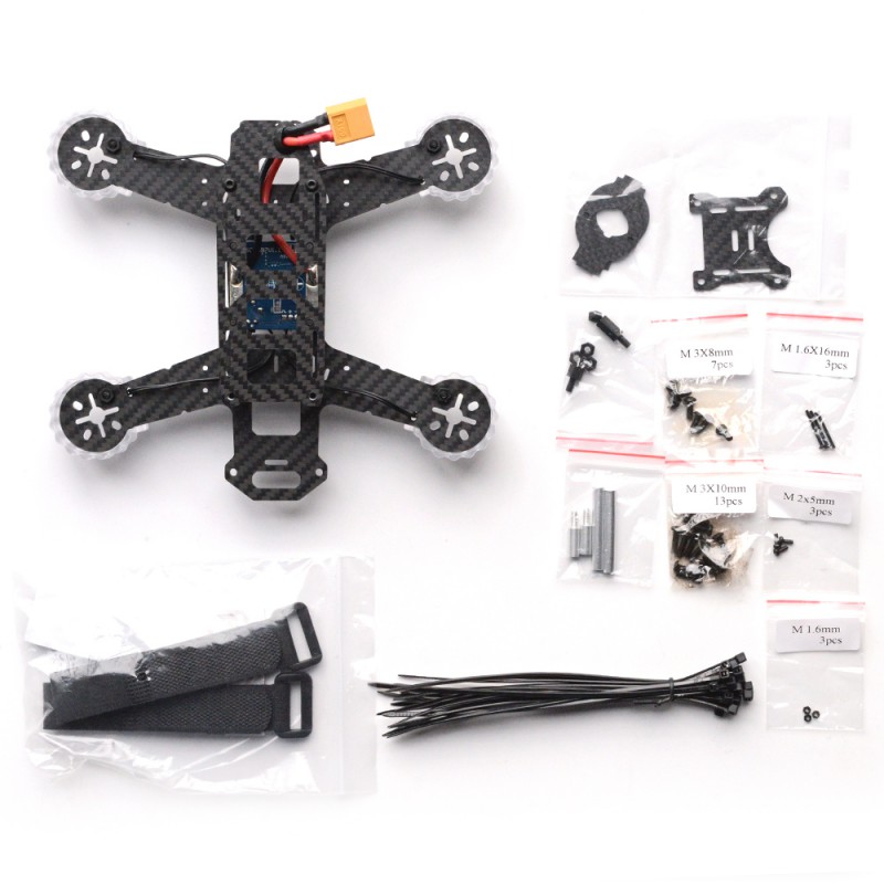 This SkyRC FX180 FPV quad racer frame is super light and super strong. The design is perfect for a high performance FPV drone racer. The frame main plane features a 4 mm thick main plate and a 1.5 mm thick top plate to offer performance and durability.