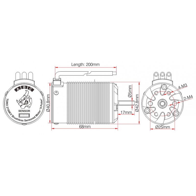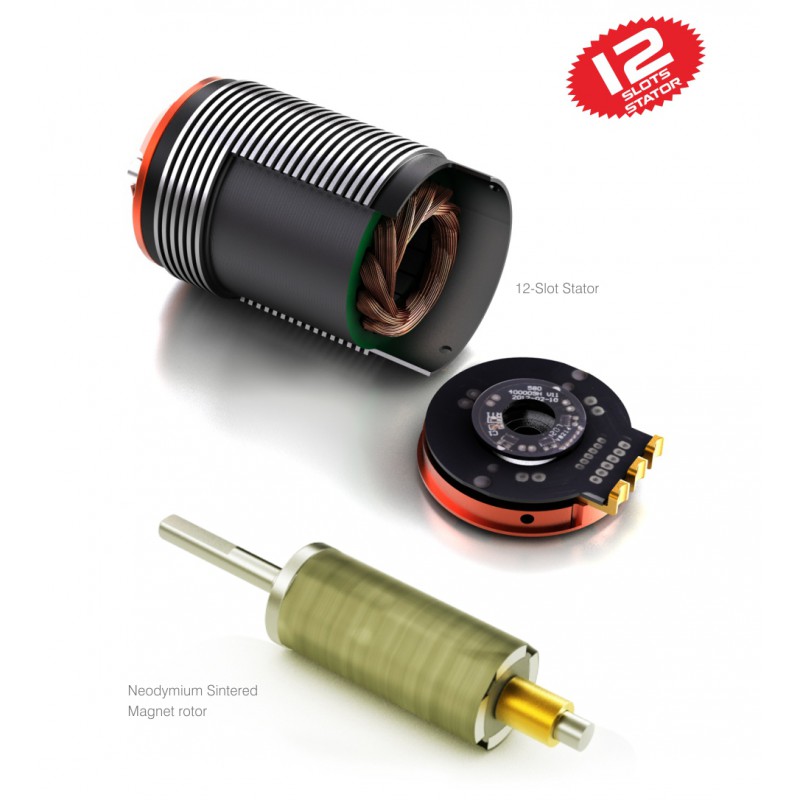 SkyRc TORO X8 pro series sensored brushless motor is designed for 1/8 scale competition buggy, equipped with 5mm shaft, 12-slot stator and 4-pole motor. It supports both sensorless and sensored Speed Controller.