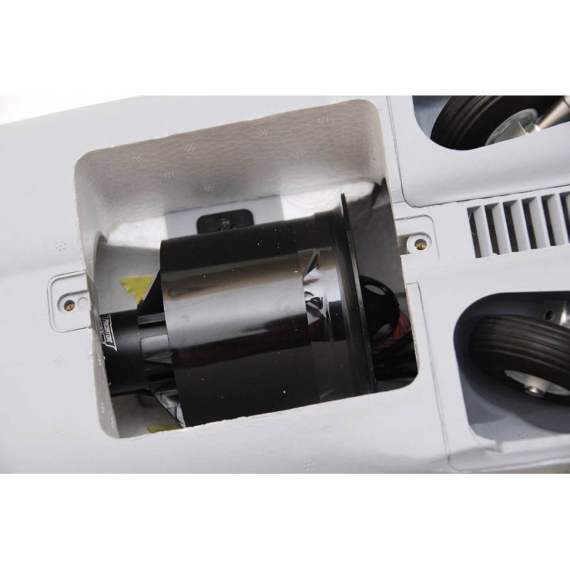 The power system, which provides tremendous thrust and speed, utilizes our new and improved 70mm 12-blade EDF V2, KV1850 motor system. This brawny system, when coupled with a 6S battery, provides a resonating turbine engine sound.