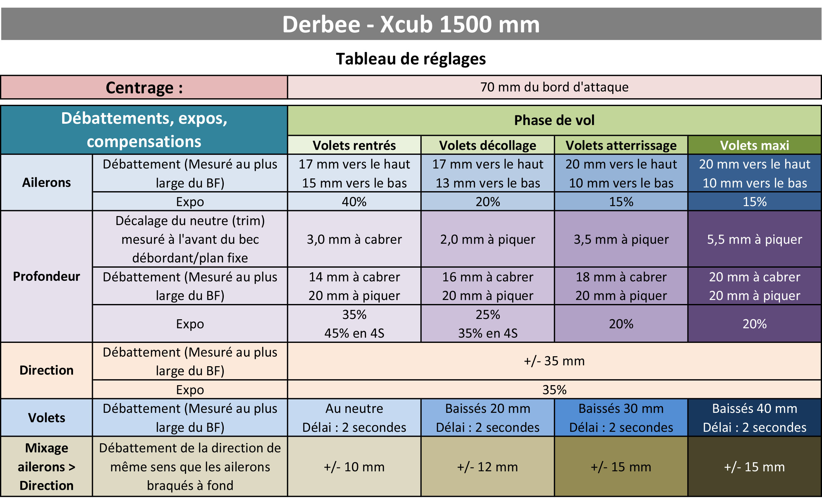 Er is ook een zeer uitgebreide tabel met afbuigingen, exponentiële instellingen en mixen die zijn aangepast aan elke flapstand.