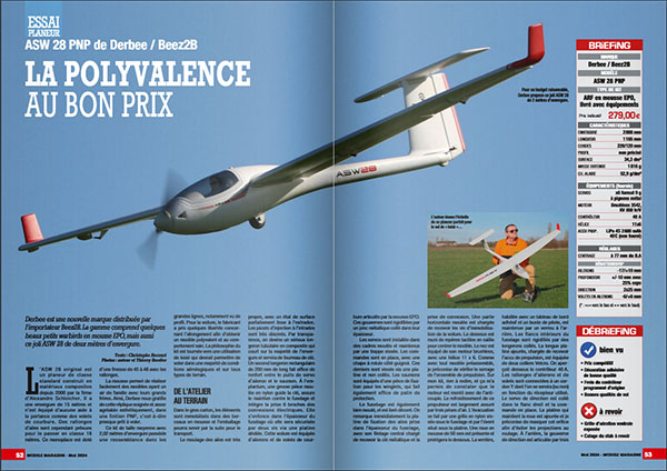 Christophe Rocourt kreeg de kans om dit 2 meter lange zweefvliegtuig grondig te testen. Het is ontworpen voor "weekend"-modelbouwers die een model willen vliegen dat er goed uitziet, niet duur is en voor iedereen toegankelijk is.