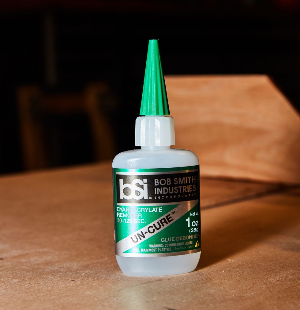 Les super-colles ont la réputation d'être si puissantes qu'elles collent accidentellement toutes sortes de choses, des doigts des gens aux pièces dans la mauvaise position. L'application d'un peu de dissolvant de colle cyanoacrylate (Debonder) dissout les adhésifs et permet de retirer les pièces et de les remettre en place ou, dans le pire des cas, de se décoller les doigts.
